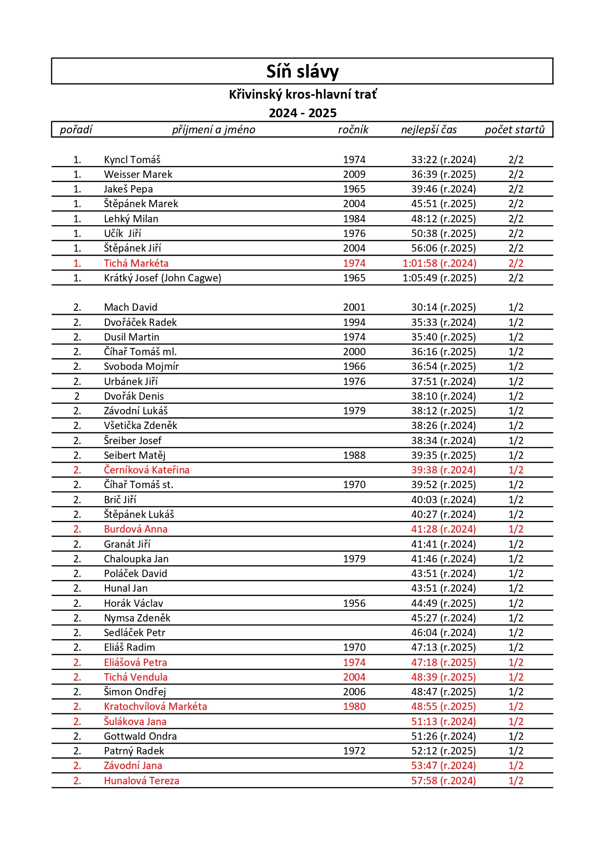 Počet absolvovaných závodů každého závodníka a jejich nejlepší čas